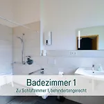 Η Traumweiler Ferienhaeuser Am Nationalpark Hunsrueck Hochwald - Barrierefrei -Teilweise Hundefreundlich - Privater Garten - Natur Beginnt Direkt Am Haus έχει μπάνιο με walk-in ντους και ξεχωριστή τουαλέτα. Επίσης, παρέχονται στεγνωτήρας μαλλιών και πετσέτες για την άνεση των επισκεπτών.